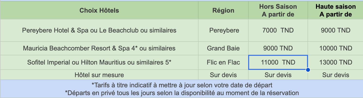 - Prix : A partir de 7000 DT / voyageur