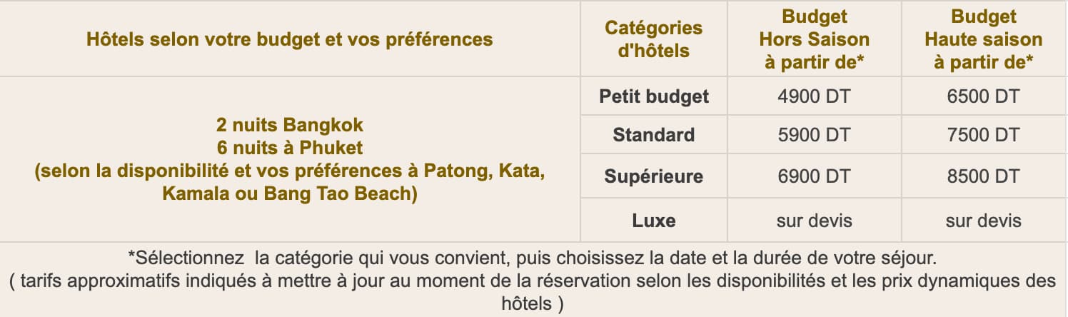 Prix du voyage à Bangkok & Phuket en Thaïlande :