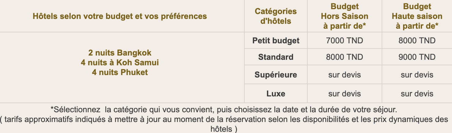 - Prix : A partir de 6700 DT / voyageur